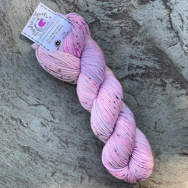 This was my lone purchase at the Adirondack Wool & Arts Festival last year. It's a beautiful Pandia's Jewels hand dyed Merino/Nylon/Stellina blend. It's her Dazzle yarn and the colorway is Yarn Magic.